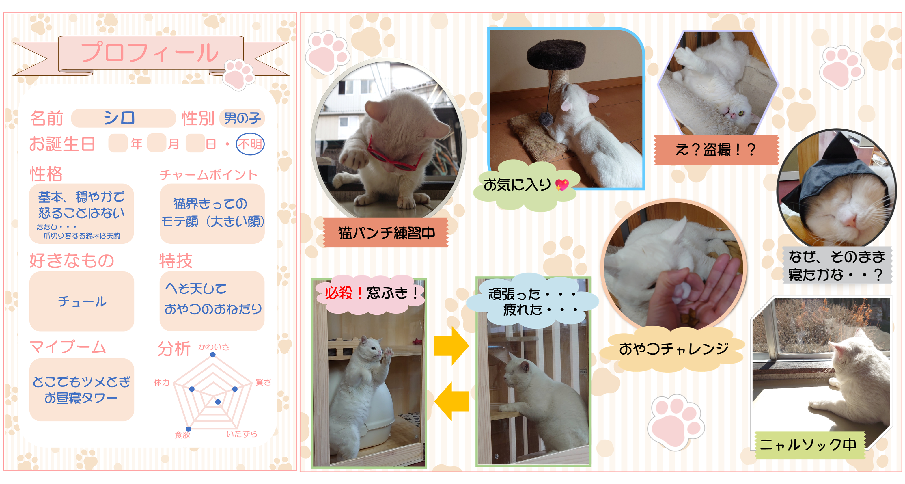 シロは、数年前にどこからともなく現れ、外で従業員さん達がかわいがっていました。そして今では、事務所のなかで従業員さん達だけではなく来社された方々にも癒しを提供しています。ご来社の際は、ぜひ声をかけてくださいね。余程、眠くない限り、お返事しますよ~。