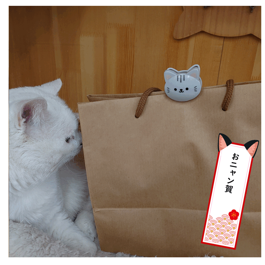 シロは、早く開けて~!と言わんばかりに猫なでモードで、